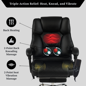 - Lower Back: 2-point kneading massage with reversible rotation.