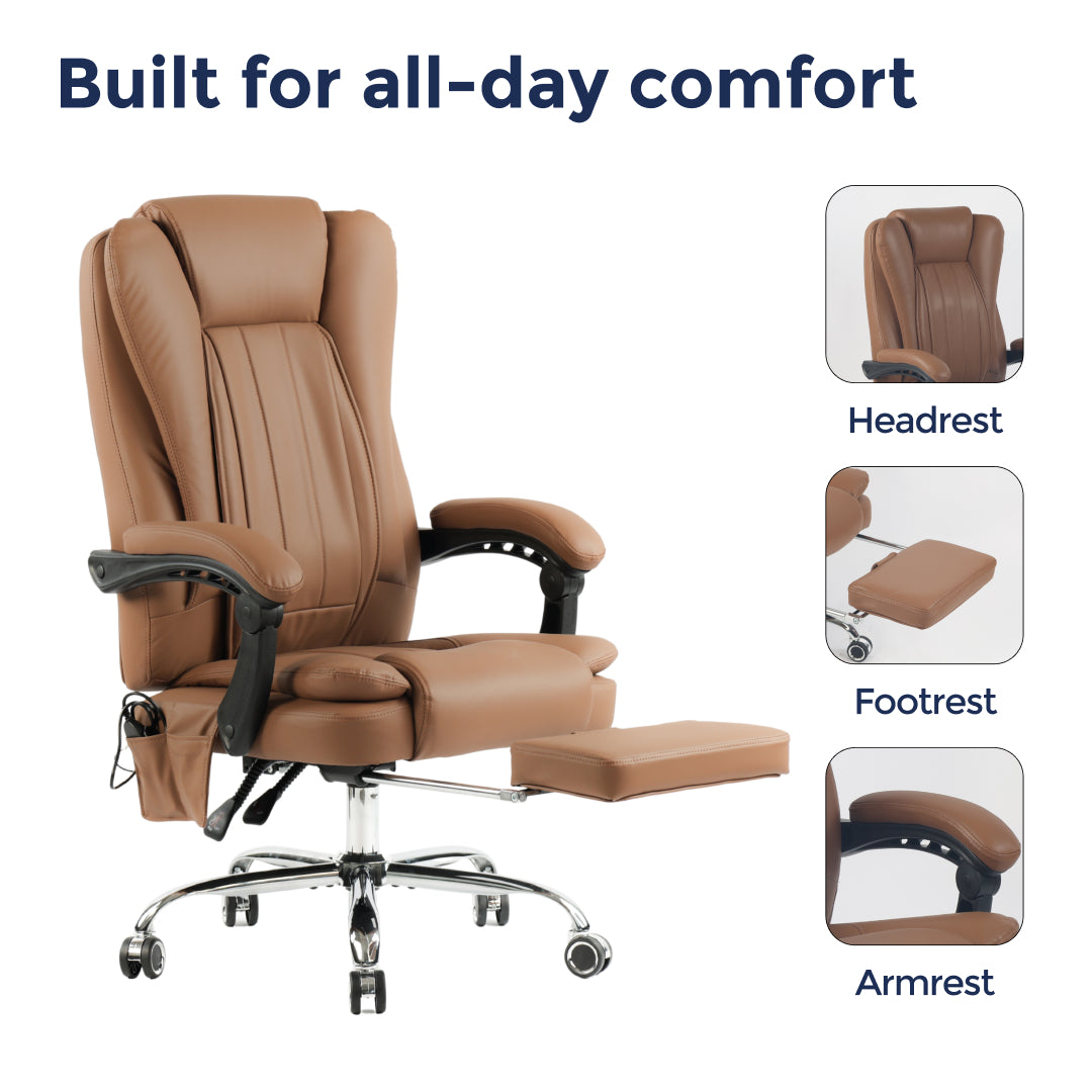 - Reclining Backrest – Adjusts from 90° to 135° for ideal comfort while working, reading, or relaxing.